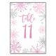 Numéro De Table Baby shower de flocons d'argent rose Onze