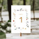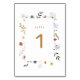 Numéro de table de baby shower floral mignon avec un cadre fleur sauvage aquarelle avec de minuscules fleurs sauvages.