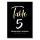 Aucune fête de Bar Mitzvah n'est complète sans cartes de numéros de table personnalisées. Laissez votre fils être fier, se réjouir et célébrer son étape importante lors de sa fête parfaitement coordonnée. Un script manuscrit faux-plaqué or moderne et audacieux se superpose à un fond noir dramatique et sophistiqué. Personnalisez le texte personnalisé avec le numéro de table, son nom et la date de l'événement. Changez le numéro pour chaque table dont vous avez besoin et ajoutez-en un à la fois à votre panier. Garantie d'ajouter des souvenirs élégants de son occasion. Des invitations, des enveloppes, des étiquettes d'adresse, des autocollants, des serviettes et d'autres friandises de Bar Mitzvah assortis et coordonnés sont également disponibles dans cette collection tendance et spéciale.