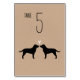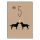 Black Labrador Retriever marié et marié silhouettes avec coeur. Une carte de table de mariage en papier kraft pour les amateurs de Black Lab. Chaque carte doit être numérotée et ajoutée au panier séparément. Visitez Jenn's Doodle World pour obtenir encore plus de cartes de table pour chiens de races et de produits de planification pour mariages sur le thème du Labrador.