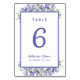 Un modèle pour n'importe quel nombre, ce design élégant de numéro de table de mariage floral à l'aquarelle présente un design classique de jardin botanique avec des nuances élégantes de fleurs bleu pervenche et un feuillage vert luxuriant sur un fond blanc croquant. Personnalisez le design de votre table de mariage avec vos noms, date de mariage et numéro de table dans une écriture tendance et un script. Le dos de la carte est un duplicata de l'avant. Personnalisez et commandez facilement un exemplaire pour chaque table avec les numéros de table individuels.