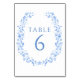 Numéro De Table Blue folk porcelaine fleurie élégant jardin mariag