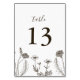 Numéro De Table Boho Fleur sauvage Line Art White Texture Mariage