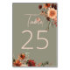 Numéro De Table Boho Rust & Chute Neutre Sage Floral Vert