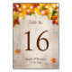 Numéro De Table Bois rustique Feuilles d'automne Mariage Numéro de