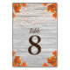 Numéro De Table Bois rustique Feuilles de chevalets Mariage