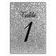 Créez vos propres cartes de numéro de table pour votre mariage avec une photo fausse parties scintillant. Customisez et ajoutez chaque carte de numéro de table dont vous avez besoin au panier individuellement. Une élégante police de calligraphie moderne noire pour le texte du numéro de tableau. Vous pouvez modifier ou customiser le style, la taille et la couleur de la police. L'arrière - plan est un arrière - plan photo imprimé en parties scintillant argent tendance avec un flou bokeh dans les tons gris pastel au blanc. La parties scintillant sera une photographie imprimée et non pas de véritables flocons de citron.