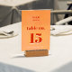 Numéro De Table Bold Modern Orange Sunset Monogram Wedding Seat