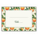 Cette carte de placement de mariage présente un design charmant avec un motif répétitif de pêches et de feuilles vertes sur un fond crème clair, créant un cadre accueillant et élégant autour de l'espace blanc central. Les teintes orange chaud des pêches contrastent magnifiquement avec les différentes nuances de feuilles vertes, renforçant le thème naturel. Les champs de texte personnalisables permettent une personnalisation, ce qui la rend parfaite pour ajouter des noms et des numéros de table dans une police de caractères script stylée. L'ambiance générale est fraîche et sophistiquée, idéale pour les mariages ou les événements formels qui recherchent une touche de fantaisie et de chaleur.