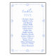 Donnez le ton à votre mariage côtier ou en bord de plage avec cette carte élégante de sièges avec des coquillages bleus délicats et une police de caractères raffinée. Parfait pour les mariages nautiques, balnéaires ou de destination, cette carte de table personnalisable aide les clients à trouver leur place dans le style. Conçu pour une élégance sans effort, ce design bleu et blanc intemporel s'ajoute aux thèmes mariages classiques, modernes et d'inspiration océanique.