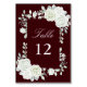 Numéro De Table Burgundy Gothic White Roses Wedding Table Numbers