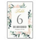 NUMÉRO DE TABLE CADRE FLEURI OR ROSE TENDRE A L'AQUARELLE MARIAGE