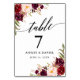 Numéro De Table Calligraphie Bourgogne Floral Mariage