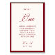 Numéro De Table Calligraphie classique Vieux argent rouge profond