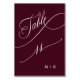 Numéro De Table Calligraphie de luxe Bourgogne Mariage numéro 11,