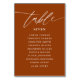 Rust Terracotta Simple Calligraphie Rustique Mariage Siège Tableau Numéro de tableau