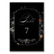 Ce design chic de numéro de table présente une vie morte florale hollandaise du 18ème siècle, incluant tulipes et fleurs sauvages blancs, rouges et or, sur un arrière - plan noir avec étiquette central personnalisé, des graphiques floraux complémentaires et une calligraphie personnalisée fluide et élégante.