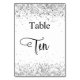 Numéro De Table Calligraphie pailletée argentée blanche table dix