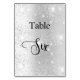 Le numéro de table est écrit avec un élégant script de style écrit à la main. Des lettres noires, un faux arrière - plan argenté avec de la poussière de parties scintillant, brillent.