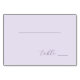 This wedding place card features a minimalist design with a light lavender background, creating an elegant and calming atmosphere. The layout includes a simple horizontal line at the top and the word "table" in a stylish cursive font centered towards the bottom, both in dark gray for contrast. The clean composition emphasizes sophistication through its use of negative space and subtle color palette, making it perfect for modern weddings. Its contemporary style is versatile, allowing it to complement various table settings while maintaining a refined look.