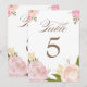 Numéro de table carte avec fleurs aquarelles roman