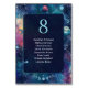 Apportez une élégance cosmique à votre réception avec ce Mariage Céleste Phases de la Lune de minuit Numéro de table de siège. Placé contre un arrière - plan de galaxie bleu et turquoise fascinant, ce design présente des phases de lune délicates qui gravitent le fond, symbolisant l'amour à travers chaque phase de la vie. Les teintes célestes éthérées et les accents étoilés créent une atmosphère rêveuse et surprenante, parfaite pour un thème mariage stargazer, boho ou clair de lune. Pratique et poétique, ce numéro de table ajoute une touche mystique à votre célébration tout en aidant les invités à trouver leur siège dans le style.
