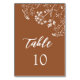 Numéro De Table Chic Burnt Orange Fleurs sauvages Mariage en terre