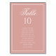 Add a touch of romantic sophistication to your reception with our Classic Dusty Rose & White Wedding Seating Chart Table Number. Featuring a soft dusty rose background, elegant white script, and a refined white border, this table number is both functional and stylish. Perfect for helping your guests find their seats while seamlessly enhancing your wedding décor with timeless charm.