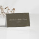 This folded wedding place card features an olive background with elegant script typography for a timeless, formal table setting. Personalized with guest names and table numbers, it helps guide seating while adding a polished, coordinated look to your reception decor. The classic design pairs seamlessly with traditional and black-tie wedding stationery suites. Ideal for couples who want place cards that feel refined, organized, and thoughtfully designed.