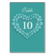 Numéro De Table Coeur de perles turquoise 11ème anniversaire de ma