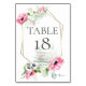 Carte de numéro de table de mariage | | Formes géométriques dorées avec feuilles d'eucalyptus à l'aquarelle, coquelicots roses et anémones blanches, un cadre géométrique doré multifacettes de style terrarium orné de bouquets floraux. Cela fait partie d'une suite de papeterie de mariage complète avec papeterie de mariage, baby shower et autres événements assortis. Design créé par TheBarefootBride™