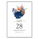 Corail - pêche rustique et bleu marine aquarelle floral mariage carte numéro de table avec faux feuillage argent conçu pour être rapidement et facilement customisé à vos détails de l'événement.