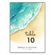 Cette belle carte de numéro de table à thème de la plage est dotée d'une vague de rivage aquarelle sur une plage de sable. Le mot "table" est dans une police de style cursif. Le côté arrière a la même conception, de sorte que le signe peut être lu sous différents angles. Ce design est en coordination avec les autres produits de la collection Mariage Cabo San Lucas ・ El Arco.