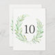 Cartes de numéro de table pour votre réception de mariage, banquet ou autre événement spécial avec une couronne de laurier dans des nuances d'aquarelle verte avec le numéro de table souhaité. Ces cartes sont créées individuellement, une à la fois, en modifiant le numéro de table puis en l'ajoutant au panier. Créez-en une pour chacune des tables dont vous aurez besoin.