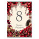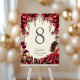 Numéro De Table Cream and Red Golden Tiara Floral Quinceañera