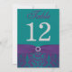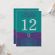 Cette carte de numéro de table de mariage en damas violet et sarcelle dramatique comporte un ruban violet IMPRIMÉ et une broche de diamants IMPRIMÉS qui correspond à l'invitation de mariage illustrée ci-dessous. Vous DEVEZ changer le numéro 12 pour chaque numéro dont vous avez besoin, l'ajouter à votre panier et répéter ce processus jusqu'à ce que vous ayez dans votre panier toutes les cartes numérotées individuellement dont vous avez besoin. Des remises de quantité peuvent s'appliquer, selon le nombre dont vous avez besoin. Le choix du papier est personnalisable. Si vous avez besoin d'autres articles assortis, veuillez envoyer un courriel à niteowlstudio@gmail.com.