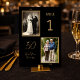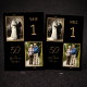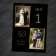 Ajoutez une touche significative à votre célébration de 50 ans de mariage avec ce numéro de table élégant présentant une disposition de photos "hier et aujourd'hui". Dans un style classique noir et or, il allie parfaitement fonctionnalité et sentiment, guidant les invités à leurs places tout en mettant en valeur l'histoire d'amour du couple.