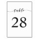 Carte de numéro de table mariage dans Elegant Calligraphy Parfait pour un mariage chic et élégant. La couleur arrière - plan blanche peut être customisée avec l'outil en ligne des options de couleur arrière - plan zazzle. Pour un look cohésif, visitez mon magasin pour voir l'ensemble des collections de nos numéros de table mariages. Oeuvre dessinée par Calani May.