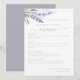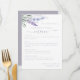 Élégant et rustique aquarelle violette et bleue lavande avec menu de mariage de typographie classique et script