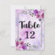 Numéro de table de mariage à cadre en faux argent et floral aquarelle pourpre et floral aquarelle confetti avec police de script brosse à la mode ! Vérifiez ma boutique pour voir la suite de mariage complète pour ce design !