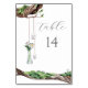 Ces magnifiques numéros de table Sweet Garden sont l'addition parfaite à tout mariage élégant. Branches arborées avec bougies suspendues et un vase plein de fleurs.