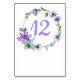 Jolie carte de numéro de table mariage faite en blanc, avec une couronne fleurie colorée, avec le numéro de table fait en lavande. Personnalisez le numéro de chaque table à la réception. Des produits correspondants sont disponibles.