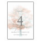 Numéro de table léger et aéré, conçu pour compléter la collection de mariage "arbre brumeux". Couleurs subtiles et sereines aux tons rose et cuivre rouillé, inspirées par la saison automnale.