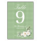 Complétez la décoration de votre réception avec ce numéro de table de mariage élégant à la rose blanche et à la verdure. Doté d'un design botanique moderne avec des roses à l'aquarelle douce et un fond à carreaux vert sauge pour correspondre à votre suite de mariage. Personnalisez facilement le numéro pour chacune de vos tables d'invités.