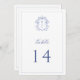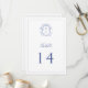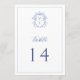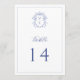Blason monogramme bleu Régence, numéro de table de mariage. Blason de style baroque inspiré de l'ancien. Caractéristiques, style de conception de typographie bleue élégant et chic mélange de script et de type gras. Veuillez noter que les cartes de numéro de table doivent être commandées individuellement.
