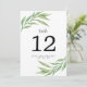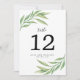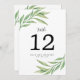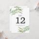 Cette carte de numéro de table de réception de mariage sur le thème botanique présente une aquarelle originale peinte à la main de feuilles de laurier dans les coins opposés. Les couleurs sont dans différentes nuances de vert et sont recto-verso. Pour les demandes de modifications de conception personnalisées par le concepteur indépendant, veuillez envoyer un e-mail à paula@labellarue.com AVANT de personnaliser ou de passer commande.