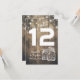 Modèles de plan de table de mariage / numéro de table / carte d'invité - Élégante jarre en brique et guirlande lumineuse sur fond de bois rustique.