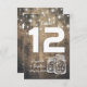Plans de table de mariage / Numéro de table / Cartes d'accompagnement - Modèles élégants de pot Mason et guirlandes lumineuses sur fond de bois rustique.