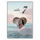 Ces numéros de table pour photos de mariage sur la plage sont à la fois une façon élégante et unique d'ajouter une touche de personnalisation à votre mariage. Servant à la fois de décoration et d'usage fonctionnel, ces numéros de table sont complets avec un fond de vague océanique, le numéro de table, les noms des mariés, la date du mariage, et votre propre photo découpée en forme de cœur. Ce design est parfait pour tout mariage sur la plage ou tout mariage qui souhaite ajouter une ambiance océanique. Profitez-en !