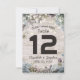 Modèles de plan de table de mariage / numéro de table / carton d'invitation - Écriture élégante, fleurs botaniques aquarelle vintage et guirlande lumineuse sur fond en bois rustique.